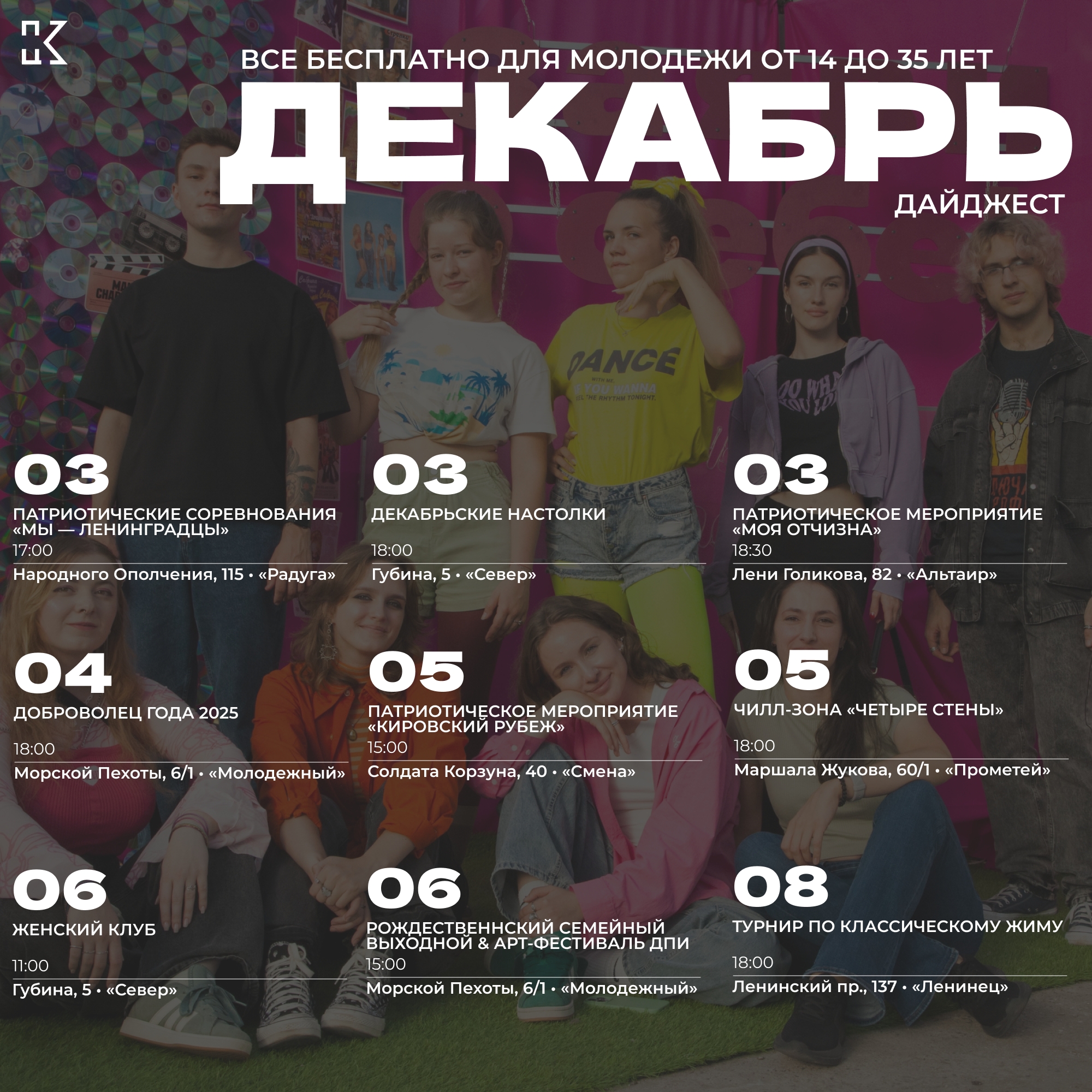 Бесплатные секции, студии и мероприятия в Кировском районе для молодежи 14–35 лет!